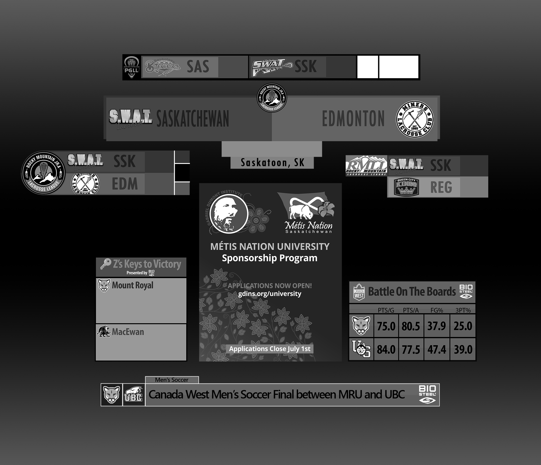 Broadcasting teams such as the Saskatchewan SWAT Lacrosse Club & Mount Royal Cougars